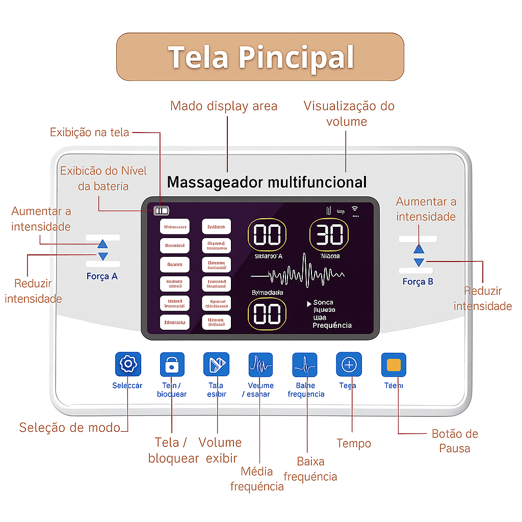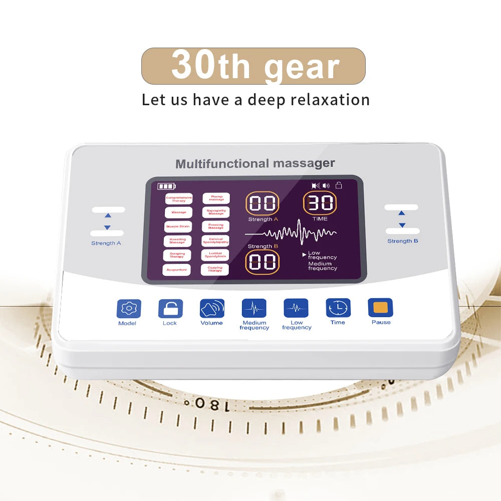 MASSAGEADOR MULTIFUNCIONAL ELETROESTIMULAÇÃO COM 12 MODOS E 30 NÍVEIS - ALÍVIO DA DOR, FORTALECIMENTO MUSCULAR E MUITO MAIS!